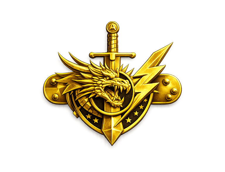 Su diseño integra una espada vertical que simboliza el compromiso con la misión, un rayo que representa rapidez y contundencia en la acción, y un emblema central que refleja pertenencia y lealtad a la unidad. La figura del dragón, elemento dominante del broche, encarna determinación, agresividad controlada y superioridad táctica.